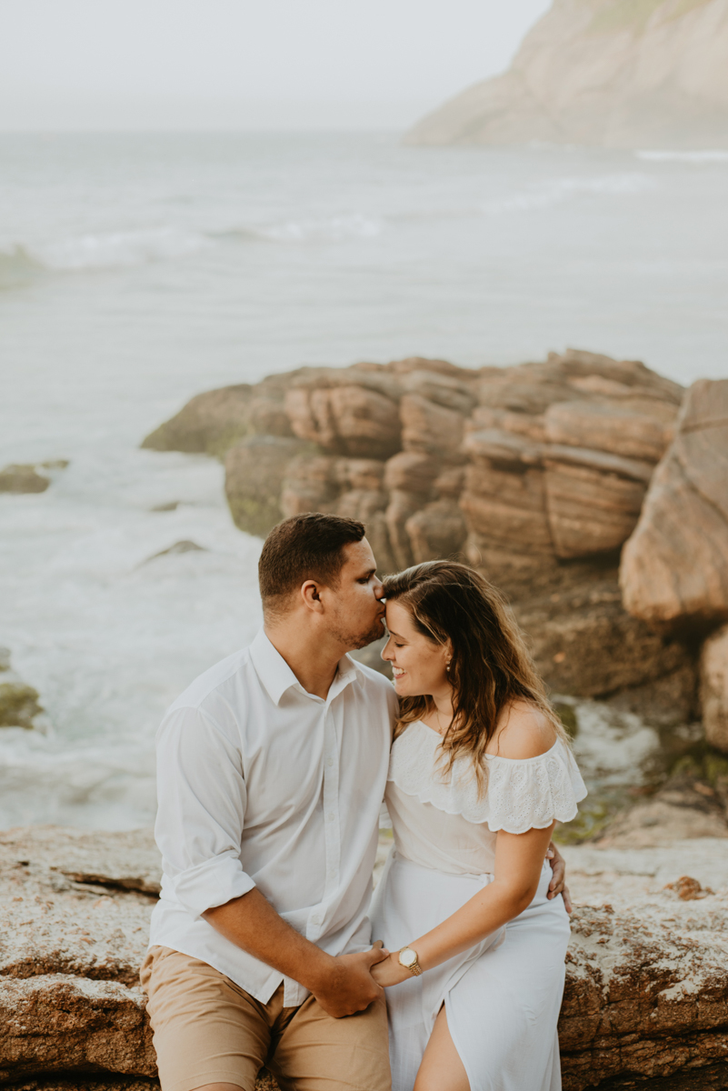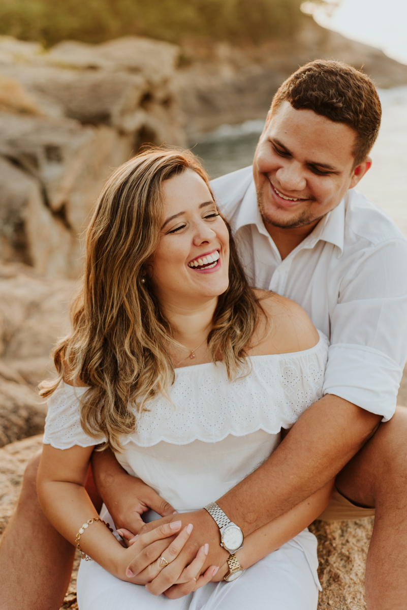 Fizemos o Pré Wedding deles nesse local maravilhoso, que é a Praia de Joatinga, no nascer do sol.